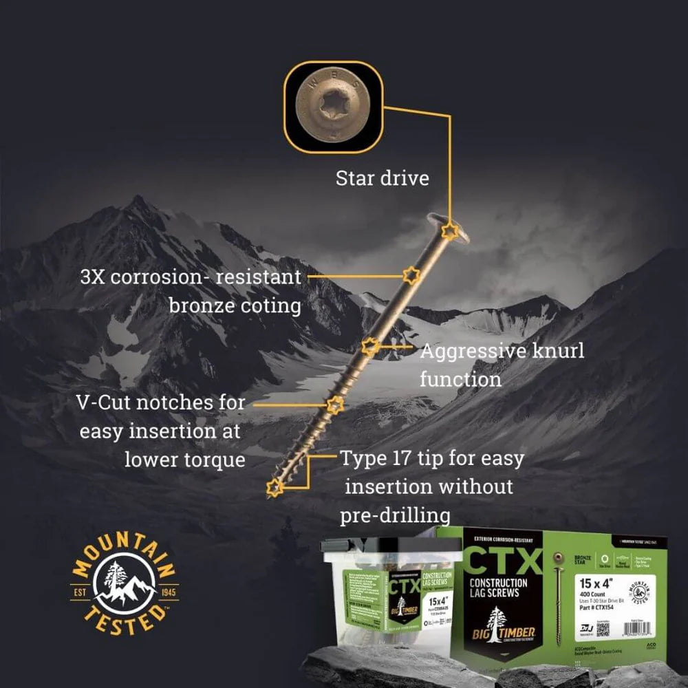 Big Timber CTX174-25 - #17 x 4" Construction Lag Screws, T-40, Round Washer Head (25/Box)