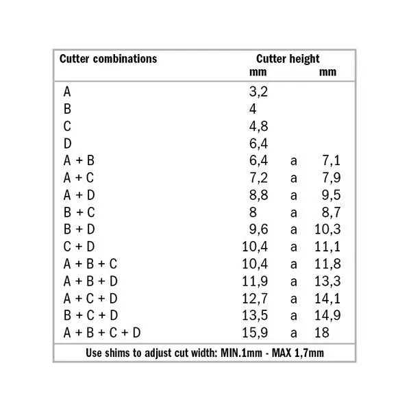 • Cutting: 1/8'' - 45/64''