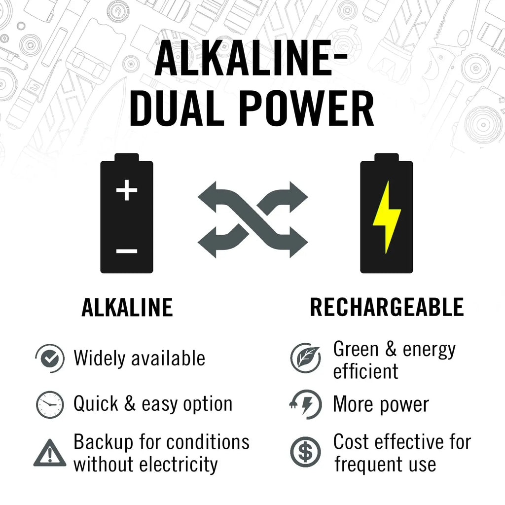 Dual Power lets you choose: run on included alkaline batteries or upgrade with a COAST ZITHION-X™ rechargeable for extended, cost-saving performance.