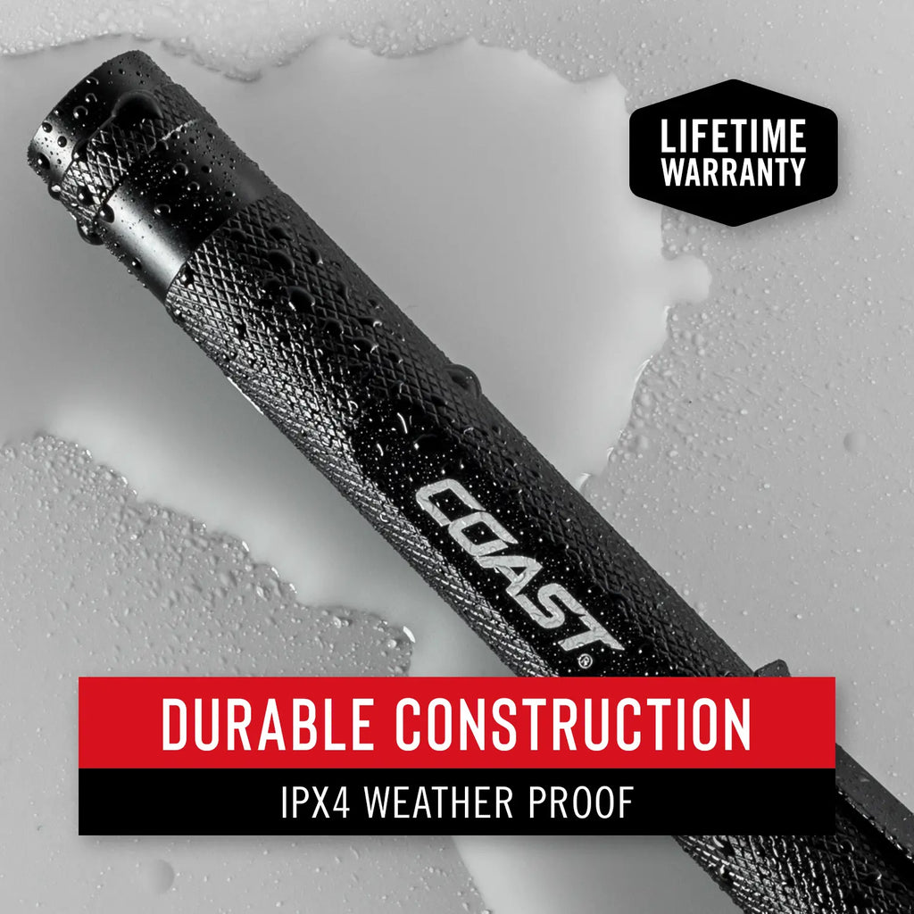 With Coast’s commitment to quality, the G20 Flashlight is impact resistant, weather-resistant and its LED is virtually unbreakable. The G20 Flashlight is backed by Coast’s lifetime warranty against defects in materials and workmanship. Tested and rated to ANSI/FL1 standards.