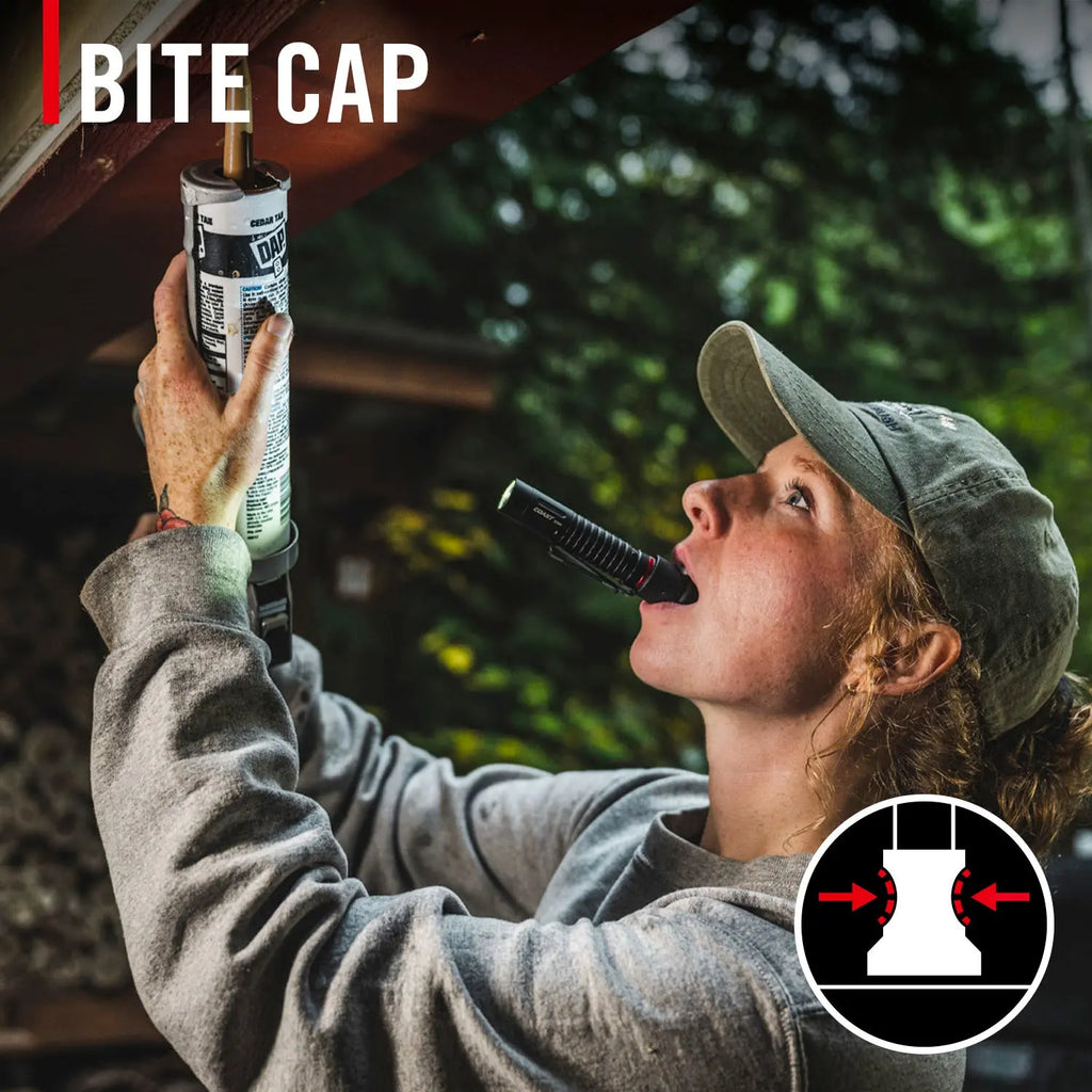 Comfortably hold the penlight in your mouth with the durable, removable rubber bite cap—designed for a secure grip and added protection.
