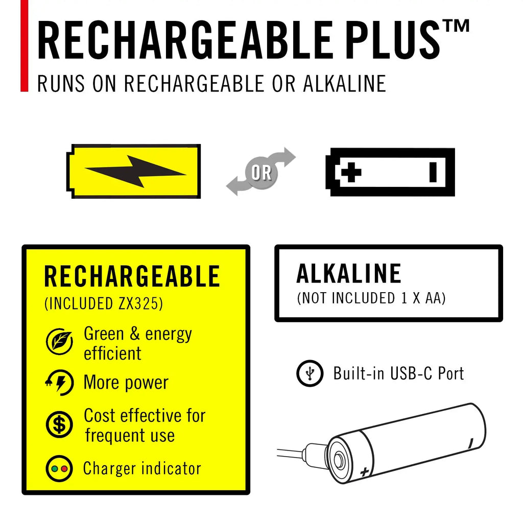 Power your flashlight the way you prefer—use the included COAST ZITHION™-X rechargeable battery or swap in disposable batteries when it suits your needs.