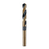 The DEWALT Black & Gold Metal Drill Bits feature a black and gold coating to prevent rust. The tapered web design provides extreme durability to resist breakage. The bits feature a 3-flats shank to reduce spin-out in the chuck. Black & Gold metal drill bitst are made of heavy-duty High Speed Steel for drilling into a variety of materials including plastic, wood, and metal. Each bit features a 135° split point tip design to help reduce walking.