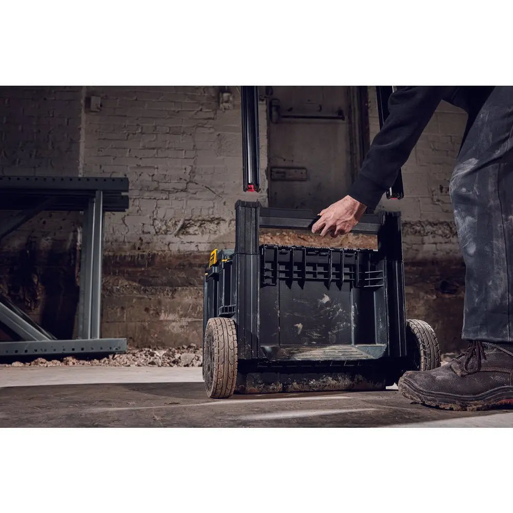 Navigate through worksite terrain with the ToughSystem 2.0 Rolling Toolbox. With its 8 inch wheels, this toolbox is engineered and designed for rugged-terrain mobility. Its patented auto-connect side latches allow one-handed operation. It also has 2-piece metal front latches for added durability when securing tools inside of the box. This toolbox has 20% larger storage capacity when used with DWST08165 and DWST08300 as part of a tower. The ToughSystem 2.0 Rolling Toolbox is built for real jobsite conditions with high-impact protection. It is dust and water resistant with an IP65 rating and has a 250 lbs. load capacity. The toolbox has a removable inner tray for optimal organization. The ToughSystem 2.0 Rolling Toolbox is backwards compatible with any ToughSystem product.