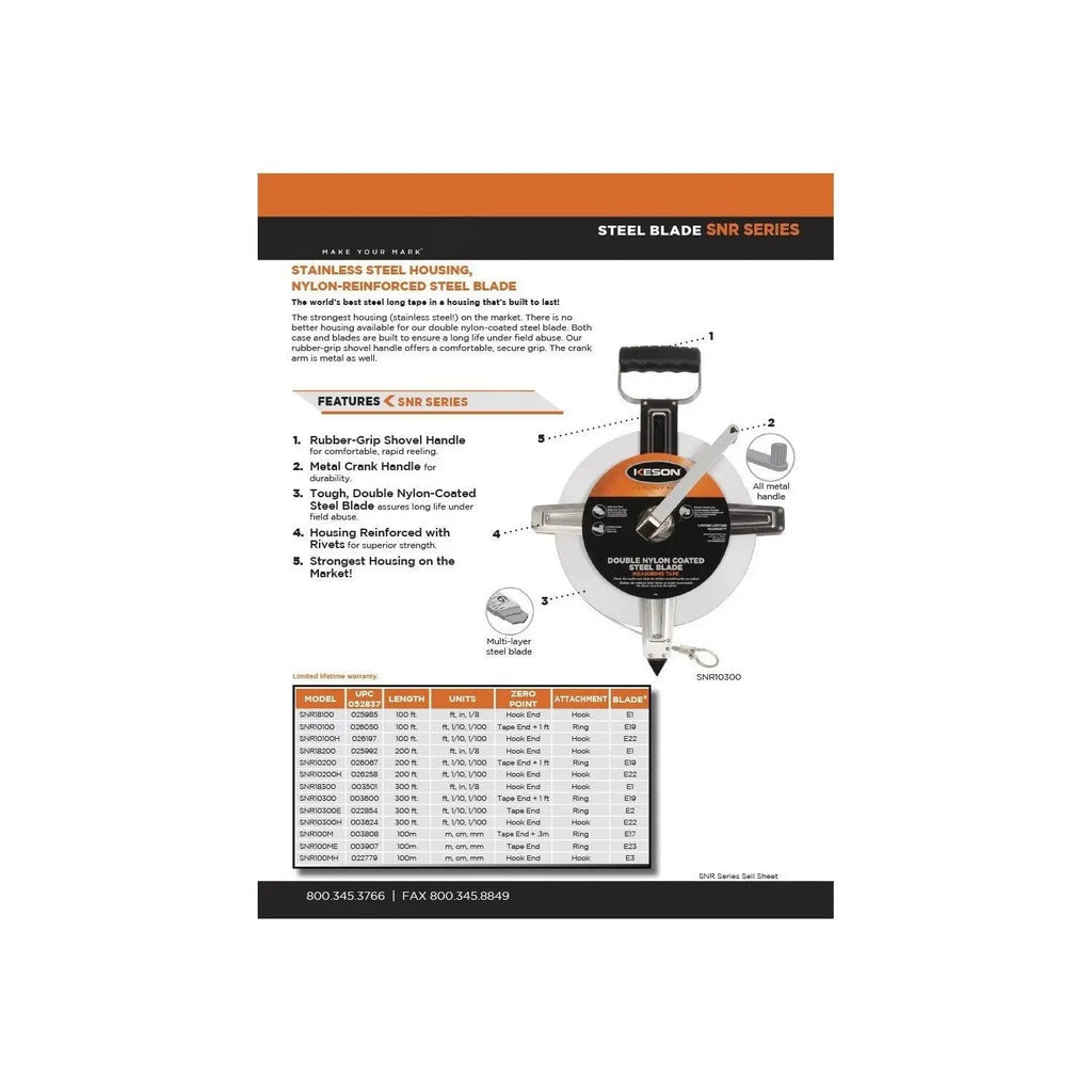 Keson SNR18300 - 300' Nylon Coated Steel Measuring Tape