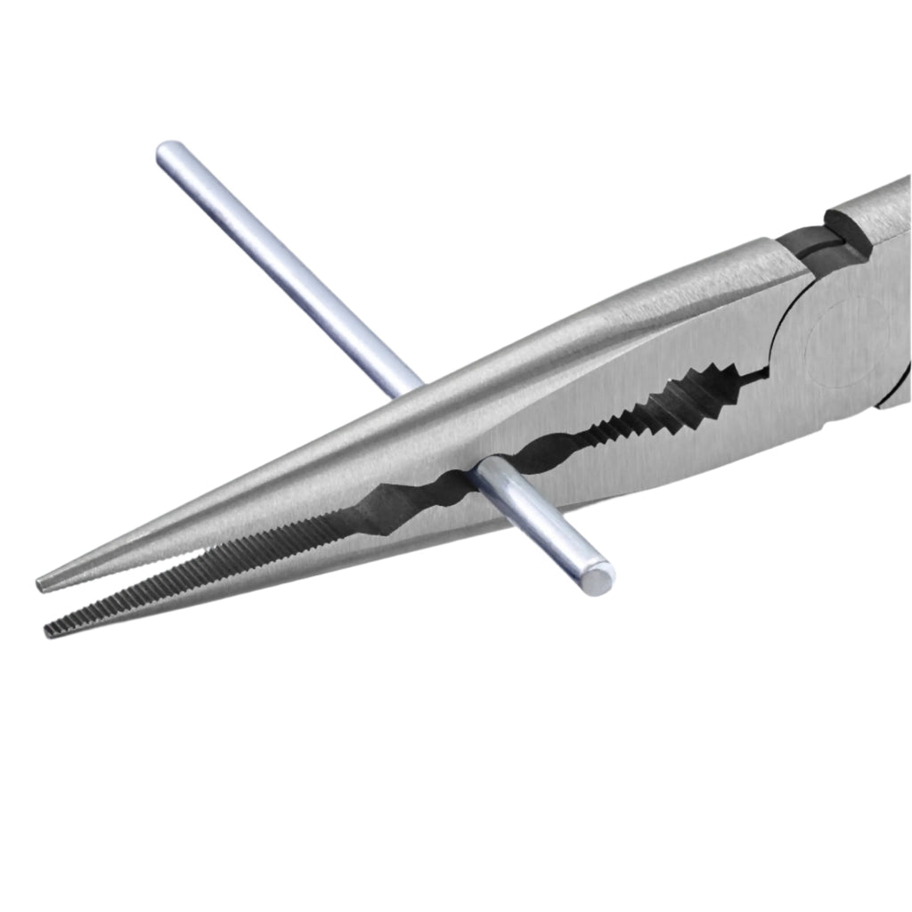 • Serrated gripping area for holding on to round parts near base of jaws