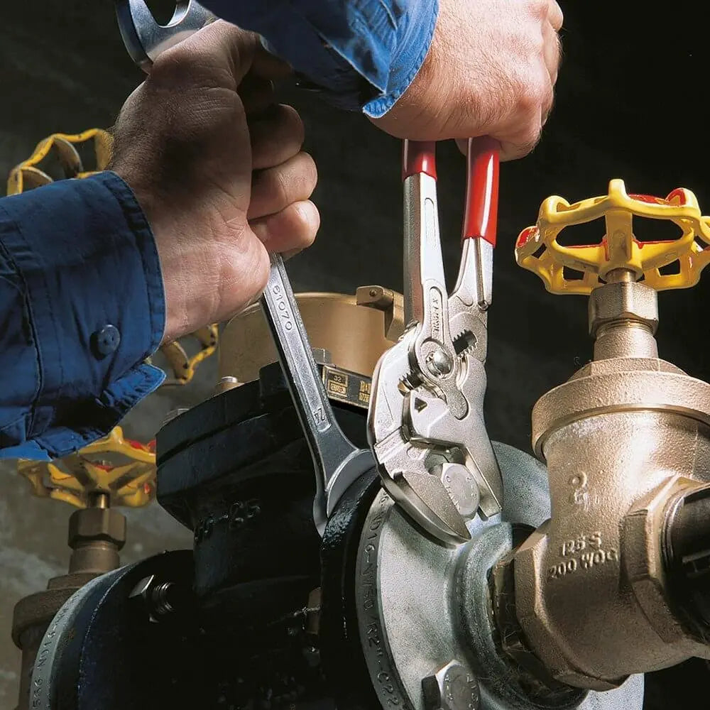 - Smooth jaws for damage free installation of plated fittings - working directly on chrome