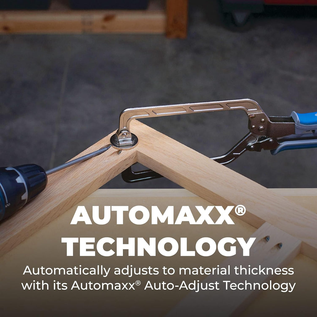 Thanks to Automaxx® Auto-Adjust Technology, Wood Project Clamps adjust to match material thickness automatically with a simple squeeze of handles — whether the material is thick, thin, or in between. You can clamp a 2x4 and then a piece of 1/2" plywood without ever readjusting the clamp.