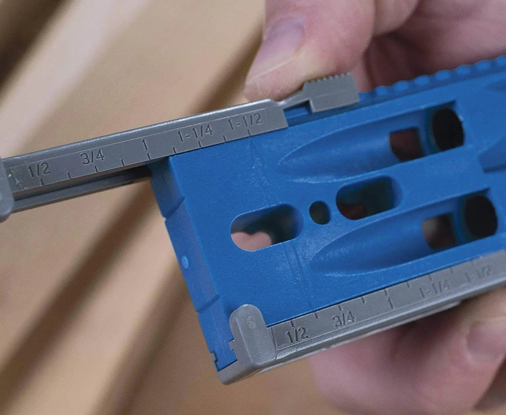 Material Thickness Setting From thin drawer boxes and craft projects to stout 2x4s, this Kreg Jig® R3 can handle just about anything. Independent positioning sliders feature nine depth settings, allowing you to easily join materials from 1/2" to 11/2" thick in 1/8" increments.