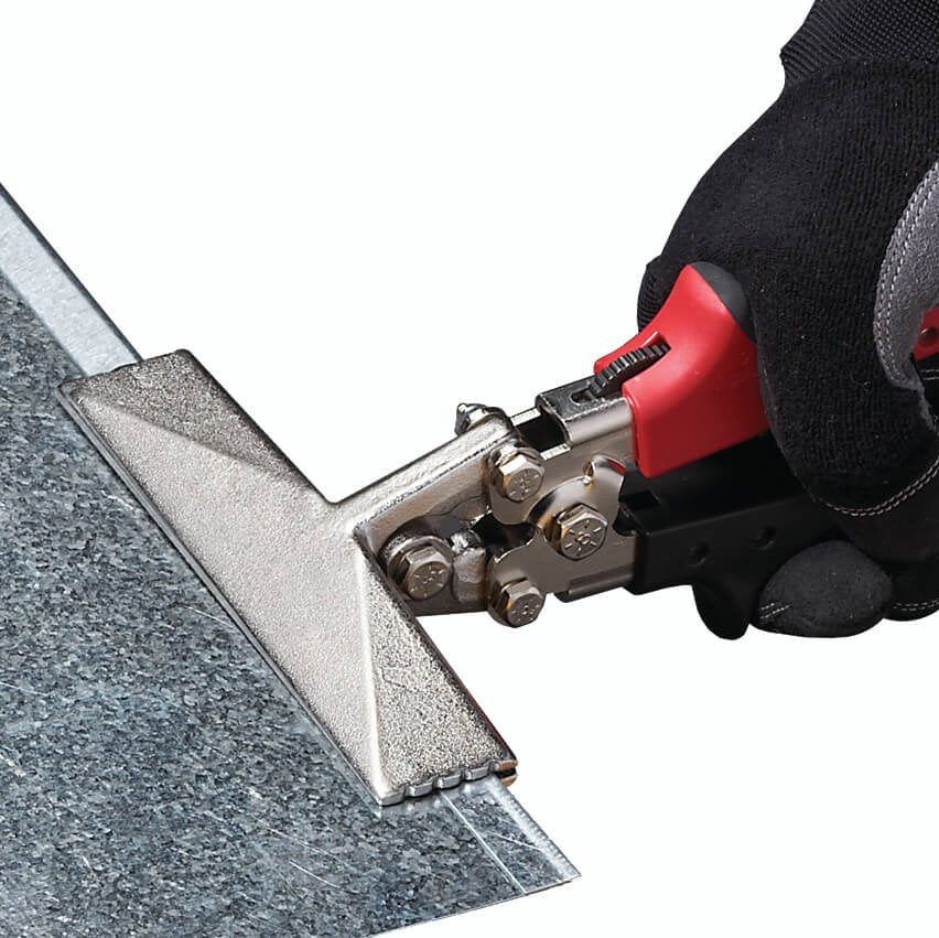 Malco’s Hand Seamers, with forged steel jaws, also feature ergonomic RedLine Handle technology. An Engineered handle opening compliments the natural power stroke of any user’s hand and maximizes the powerful 7:1 mechanical advantage of compound-leverage head to handle linkage. Comfortable handle grip contours, a non-slip grip insert, spring handle actuation and a thumb-operated handle latch ensure a natural fit and feel for comfortable one hand operation anywhere on the job.