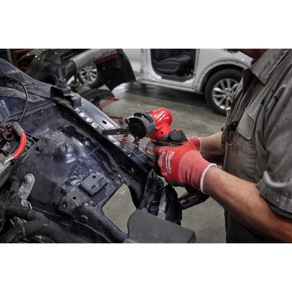 The M12 FUEL™ 1/2” X 18” Bandfile is the first cordless bandfile that delivers pneumatic performance, size, and features for professional automotive, industrial, and metalworking users. This MILWAUKEE® bandfile delivers the Fastest Spot Weld Removal™ by leveraging POWERSTATE™ Brushless Motor Technology. The cordless bandfile delivers UNMATCHED CONTROL™ with a two-speed setting, Forward/Reverse function, a lock-on button, and a variable speed trigger. The Milwaukee M12 FUEL Bandfile has a Tool Free 360⁰ Arm Rotation and provides GREATER MOBILITY & ACCESS™. With the M12™ REDLITHIUM™ XC4.0 Battery, this product removes up to 50 spot welds per charge.