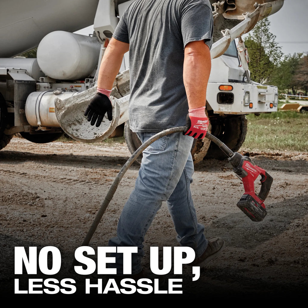 Our M18 FUEL™ 4 ft Concrete Pencil Vibrator generates up to 1.8 peak HP, with no setup, and gives you the ability to consolidate 20 yds³ of concrete per charge. The MILWAUKEE® M18 FUEL™ 4 ft Concrete Pencil Vibrator generates 1.8 Peak HP, which is three times more powerful than competitive cordless pencil vibrators, all on the M18™ Cordless System. The POWERSTATE™ Brushless Motor delivers maximum sustained power and 12,500 VPM for optimal consolidation with a variable speed trigger. REDLINK PLUS™ Intelligence ensures unmatched levels of performance and protection. The M18™ REDLITHIUM™ HIGH OUTPUT™ XC6.0 Batteries (not included) deliver you 50% more power while running 50% cooler than M18™ REDLITHIUM™ XC Batteries and are compatible with 200+ tools in the M18™ System.