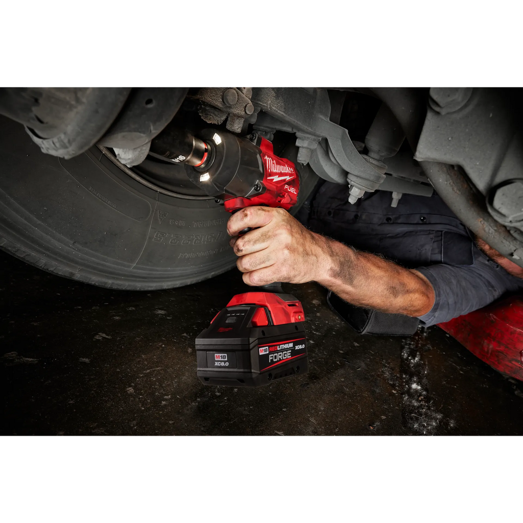 The M18 FUEL™ 1/2" High Torque Impact Wrench w/ Friction Ring delivers the best combination of power, size, and control for demanding mechanical, automotive, and industrial applications. Engineered for professionals who need maximum torque and precision in compact spaces, this tool provides up to 1,200 ft-lbs of fastening torque and 1,600 ft-lbs of nut-busting torque when paired with M18™ REDLITHIUM™ FORGE™ Batteries. At only 7.6" in length, it’s up to 2" shorter than leading competitors, giving users greater access and maneuverability in tight areas. The POWERSTATE™ Brushless Motor delivers unmatched power and efficiency under heavy load, while REDLINK PLUS™ Intelligence optimizes performance and safeguards against overloads and overheating. A patented battery isolation system minimizes vibration and ensures a secure connection for consistent performance. For visibility and precision, Tri-LED lighting eliminates shadows around fasteners, and the 4-Mode DRIVE CONTROL™ system provides precise control over speed and torque, including AUTO SHUT-OFF™ and Bolt Removal Control modes. Designed for quick, tool-free socket changes, the 1/2" friction ring enhances productivity on every job. Compatible with all M18™ batteries and chargers for a complete cordless system built to perform.