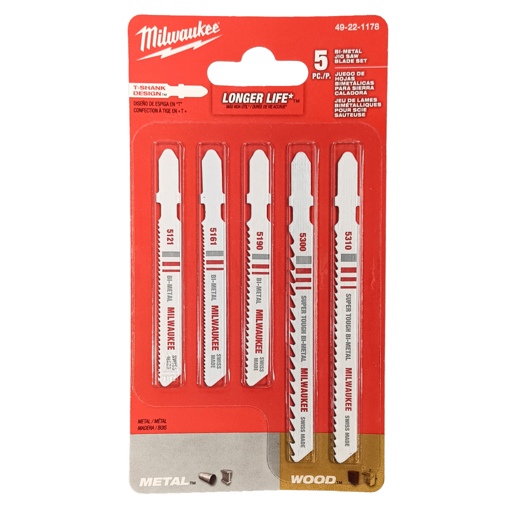 Milwaukee 49-22-1178 - 5Pc T-Shank Bi-Metal Jig Saw Blade Set