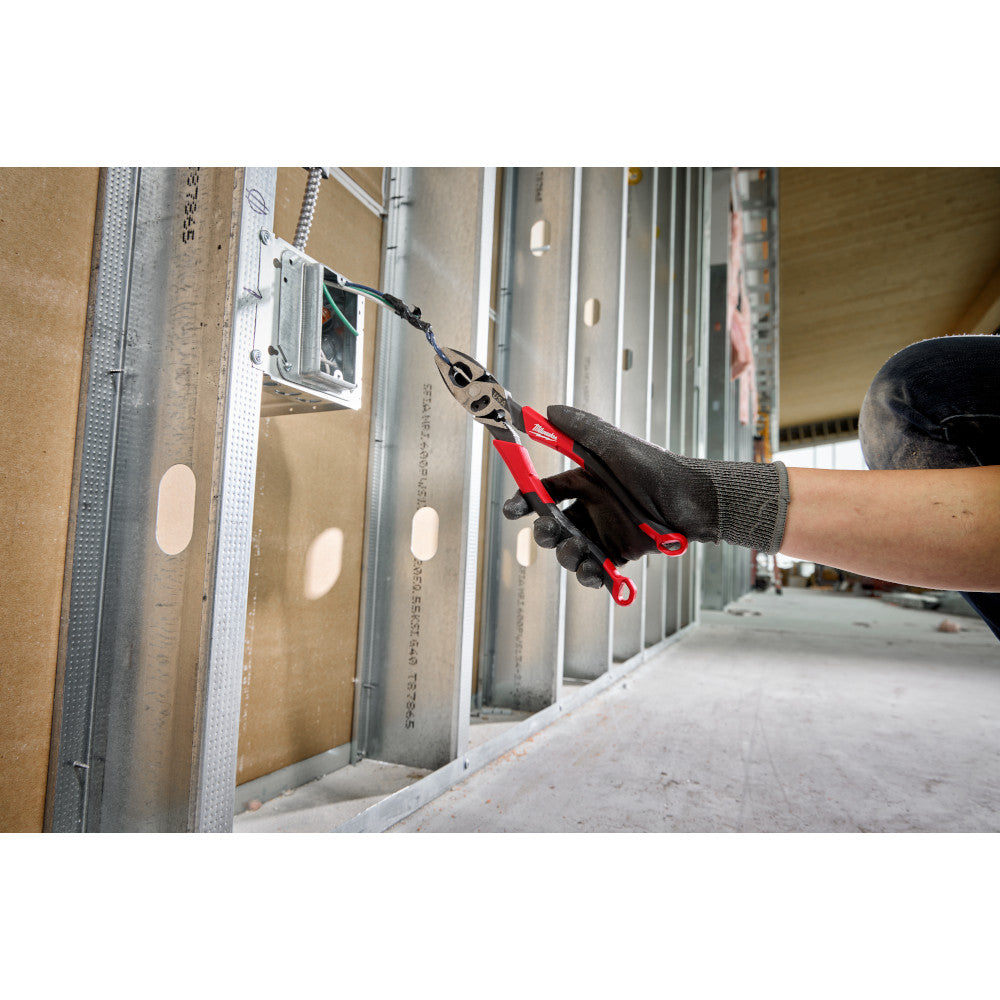 The Milwaukee® 9” Lineman’s Pliers with Crimper and Bolt Cutter (USA) are designed with the Electrician in mind, delivering the easiest cuts and a lasting edge. These pliers are designed with an optimized pivot point to provide the best leverage for tough cuts through materials like wires and common hardware. Lineman’s cutting pliers deliver the confidence of a long cut life and maximum grip with laser-hardened edges and teeth. The Lineman’s Pliers are engineered to deliver the smoothest open and close experience from the start, with no break-in period required. To complete common electrical applications with fewer tools, these pliers include an integrated crimper for insulated and non-insulated terminals and #6 and #8 bolt cutters. For additional versatility, our Lineman’s Pliers include a reaming head for ½-inch to 1-inch conduit and a straight fish tape puller. These pliers are tether ready and offered in both dipped grip with a split-ring hole and comfort grip with a lanyard hole. Milwaukee Lineman’s Pliers are made in USA with best-in-class manufacturing technology and USA-sourced materials, including durable, press-forged steel, and are backed by a complete Lifetime Guarantee.