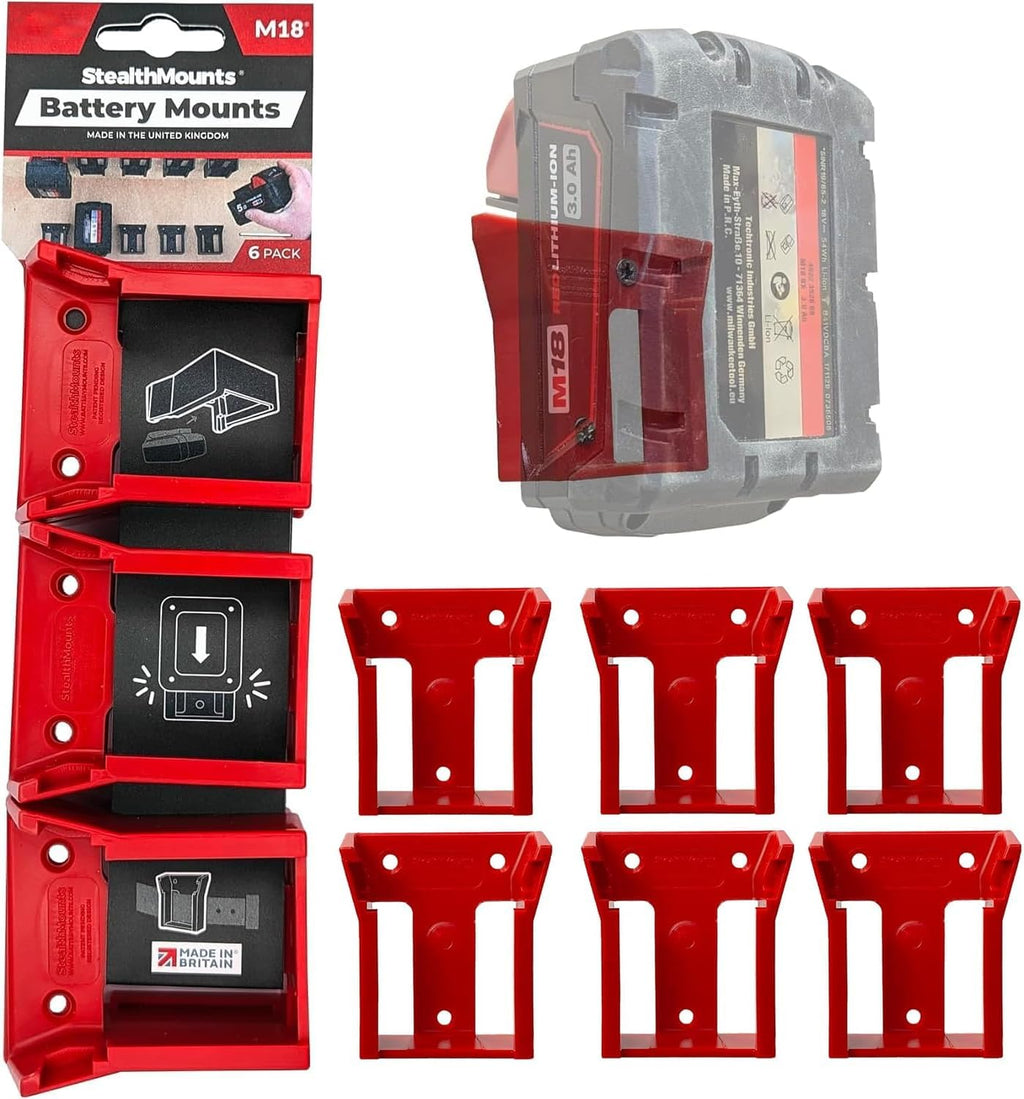 StealthMounts Battery Mount Milwaukee M18 Red 6pk Item No.BM-MW18-RED-6