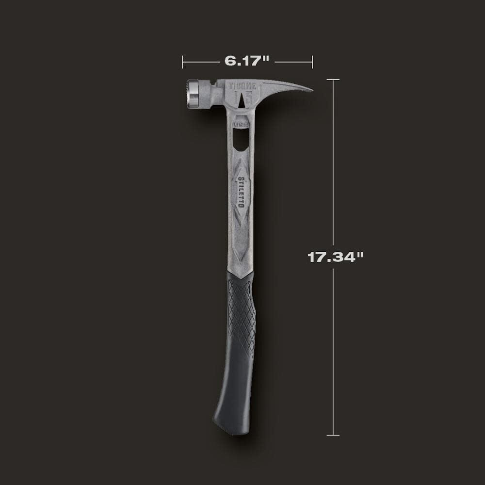 The STILETTO® 15oz TIBONE™ Hammer with Milled Steel Face and Curved Handle is Stiletto Tool's most powerful and most durable hammer. This All-Titanium hammer is 45% less weight and hits like steel. The durable TIBONE™ design is best for framing and pulling nails. The 180° side nail puller and Magnetic Nail Starter fit up to 16D and Duplex Nails. The TIBONE™ Titanium Framing Hammer features a replaceable steel face and multiple grip colors, extending the life of the hammer and providing a personal touch.