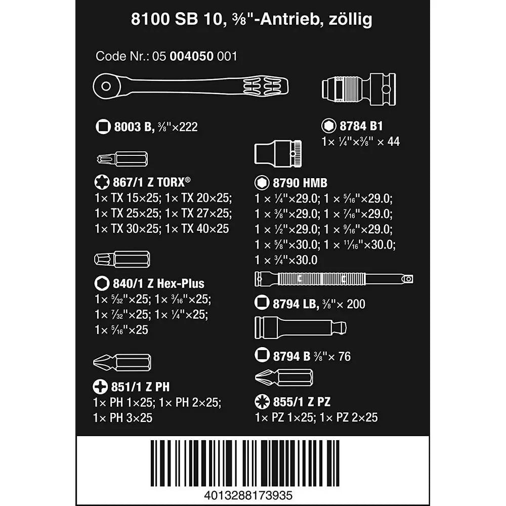 Wera 004048- 8100 SB 8 Zyklop Metal Ratchet Set with Switch Lever, 3/8" Drive